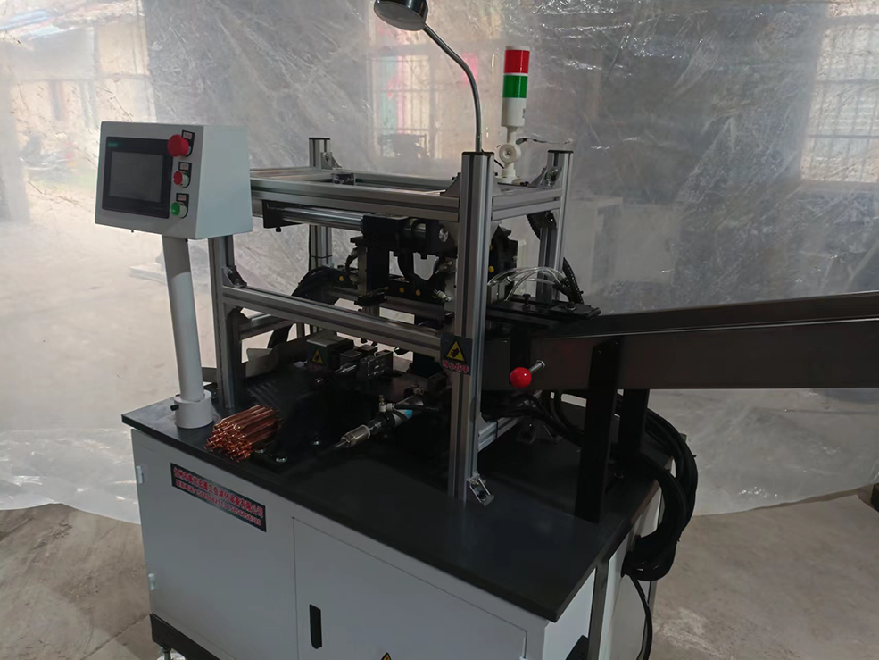 PLC 翻通邊定位機,適合于制冷行業、過濾器 電源?電壓:380V·50HZ(三相四線接地線) 主軸電機:氣動動力頭 加工長度:85m ~170mm(可加長) 加工大小:φ5 ~ 8mm(可加大) 加工速度:一分能12~15只 外形尺寸:1200(寬)X1400(高)X1800(長)